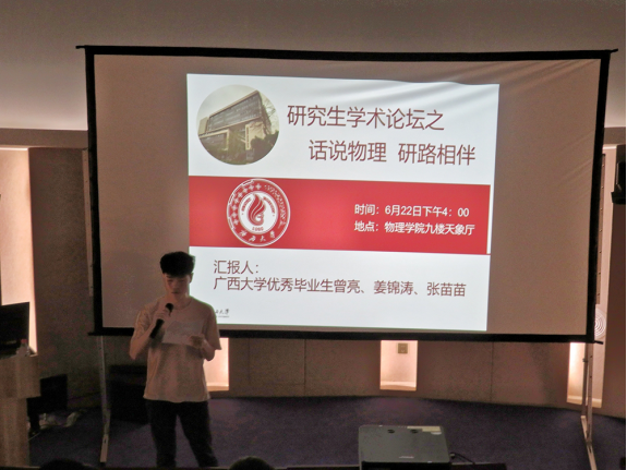 6月22日下午,由新葡的京集团8814登录入口举办的 “物华春晖”研究生学术论坛在学院九楼天象厅举办,部分研究生参加了此次活动。本次论坛特别邀请了2021届新葡的京集团8814登录入口优秀毕业生曾亮、姜锦涛和张苗苗同学介绍科研经验和科研成果。